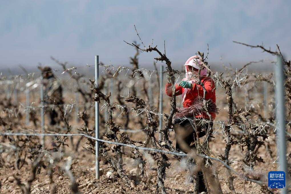 贺兰山下酿酒葡萄展藤-新华网