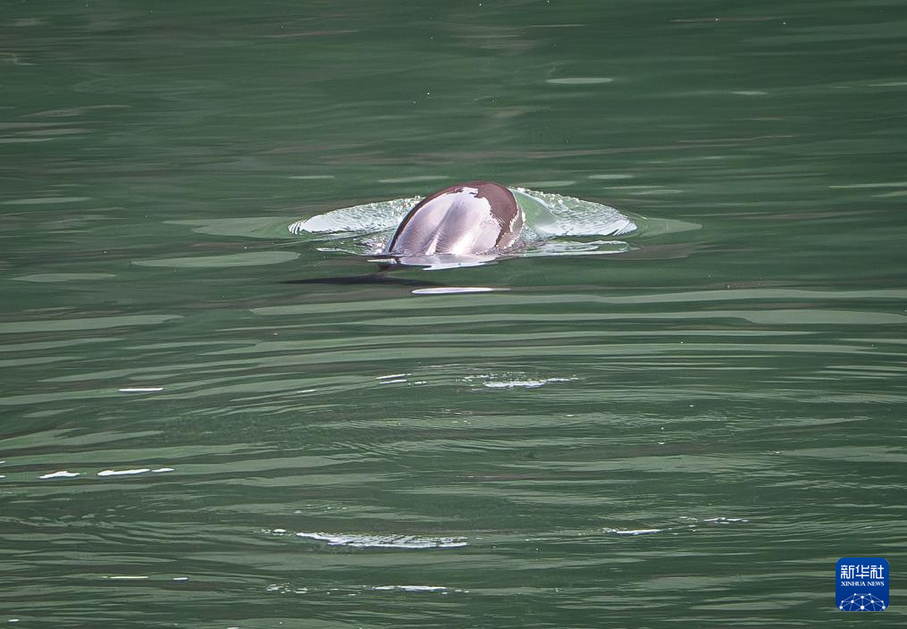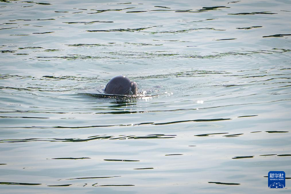 3月27日,长江江豚在长江宜昌葛洲坝下游附近游弋。