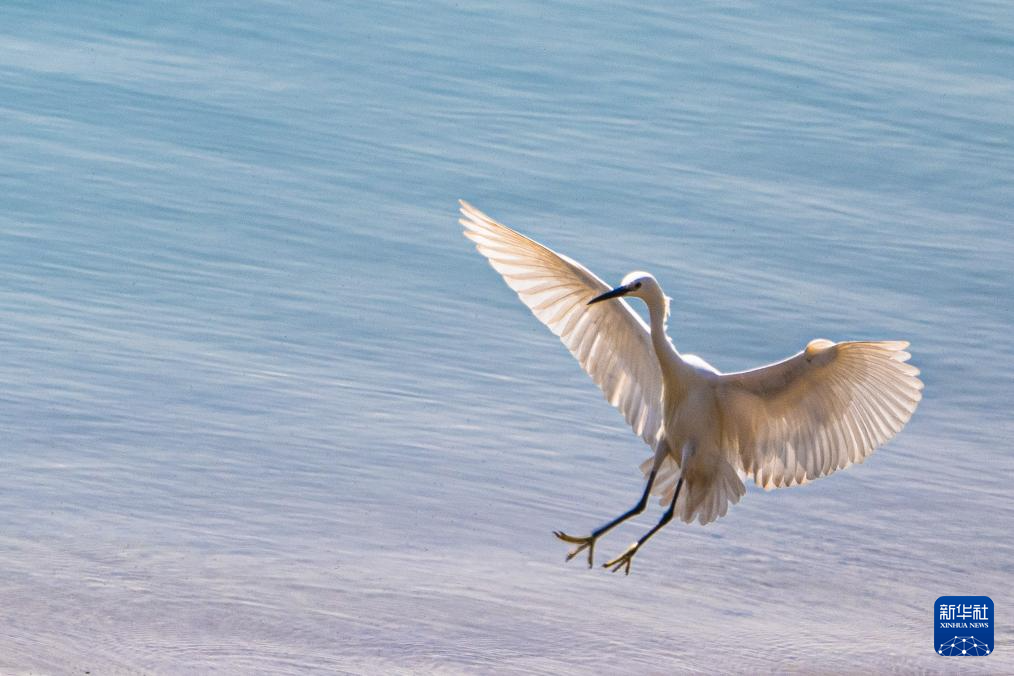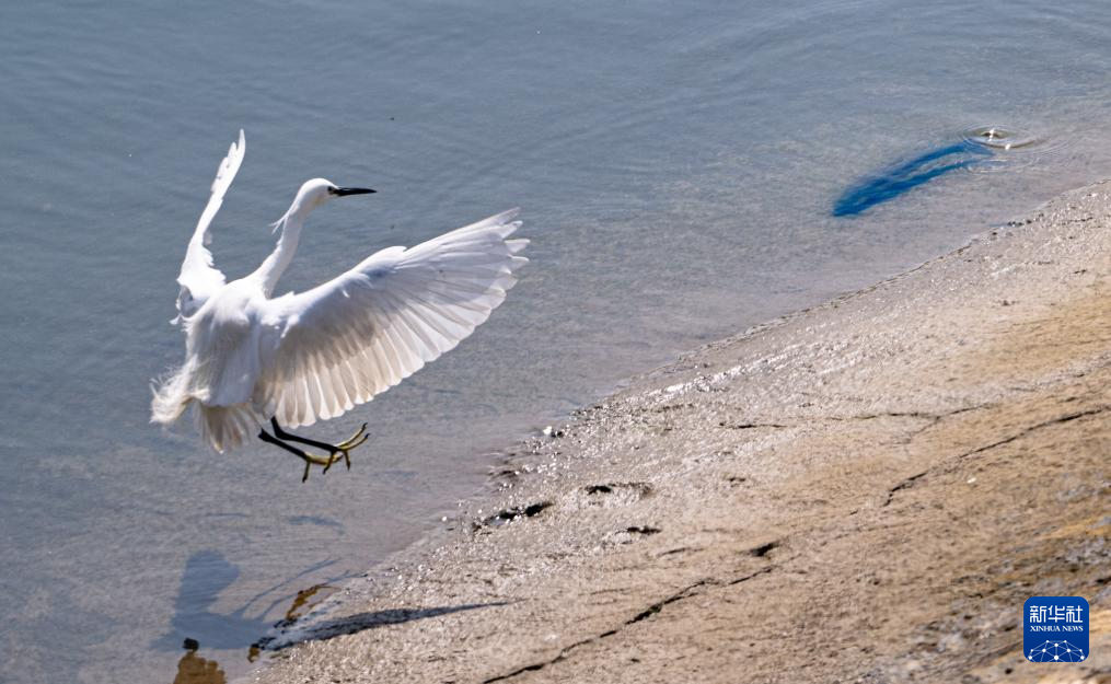 3月27日,白鹭在长江宜昌葛洲坝下游附近水面掠过。