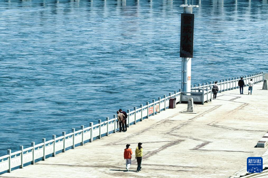 3月27日,人们在湖北宜昌葛洲坝下游江边散步。