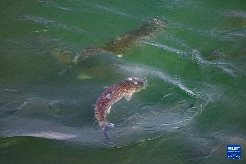 3月27日,鱼儿在长江宜昌葛洲坝下游附近游弋。