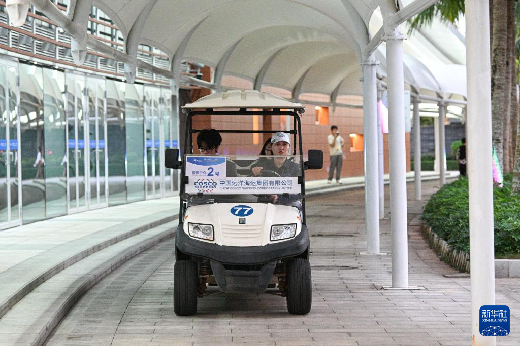 3月26日,在博鳌亚洲论坛新闻中心,工作人员驾驶新能源摆渡车,为媒体记者提供出行便利。