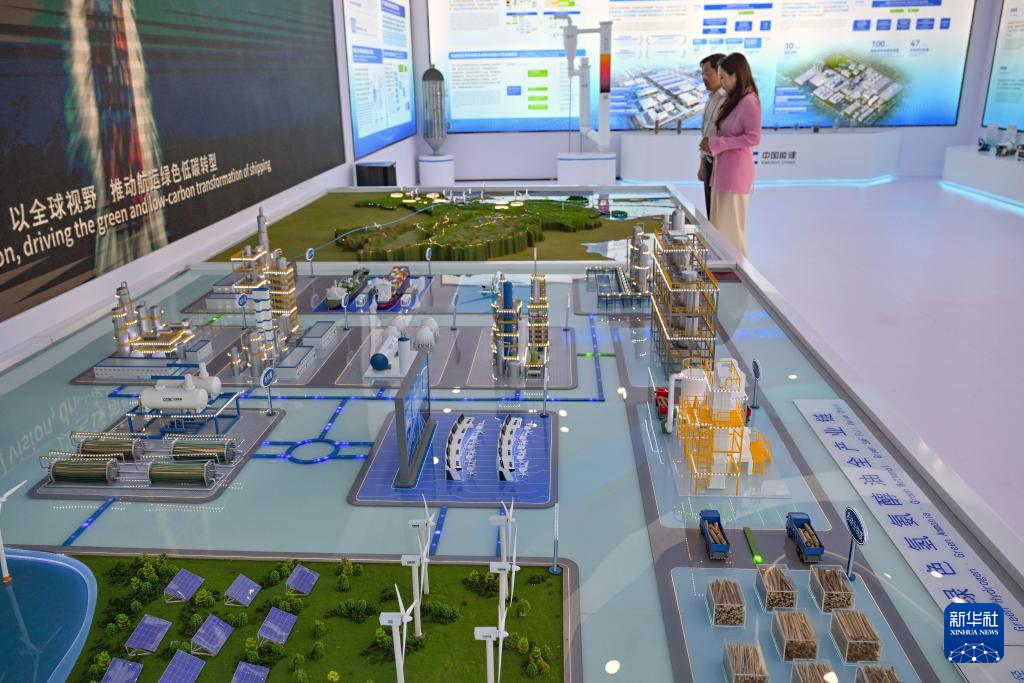 这是中国能建展馆展示的绿色氢氨醇油全产业链模型(3月25日摄)。