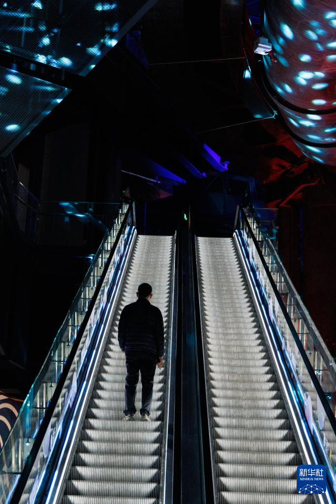 3月27日,与会人员乘坐电梯进入开幕式会场。
