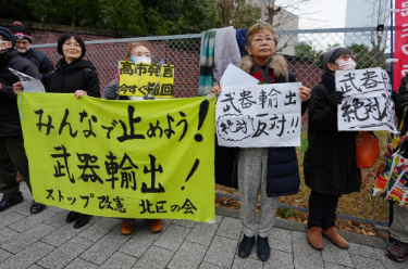 日本民众就执政联盟放宽武器出口限制的动向举行抗议集会
