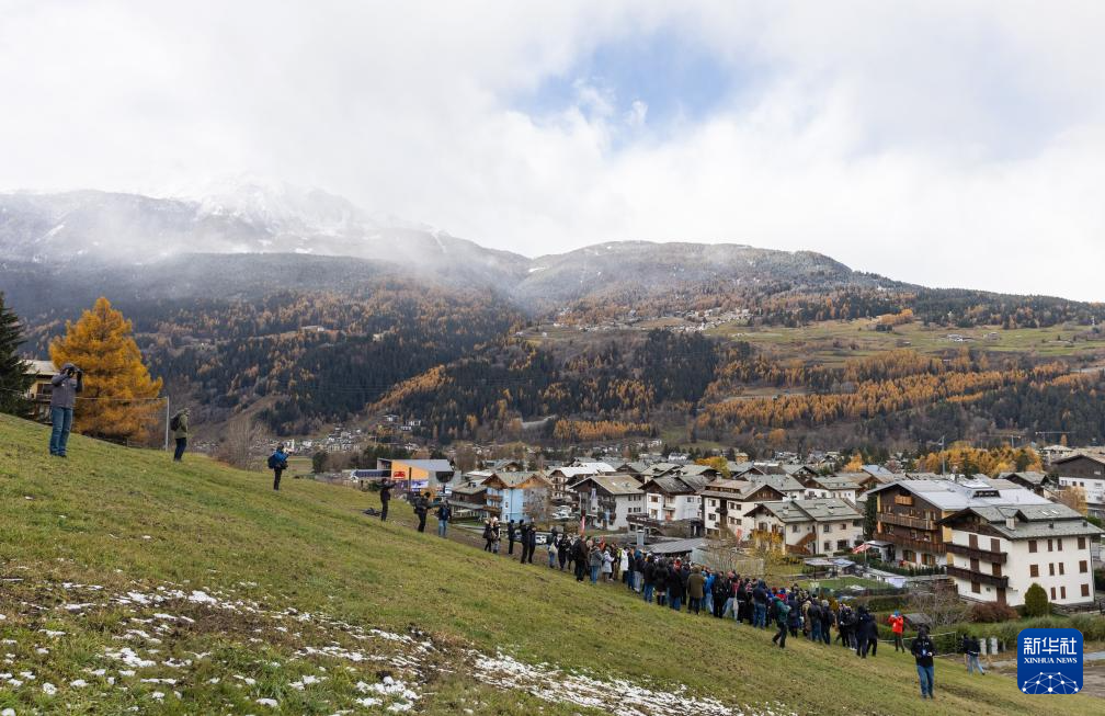 11月20日,参会人员在意大利伦巴第大区利维尼奥镇考察比赛场地。米兰-科尔蒂纳丹佩佐冬奥会自由式滑雪和单板滑雪比赛将在利维尼奥镇举行。