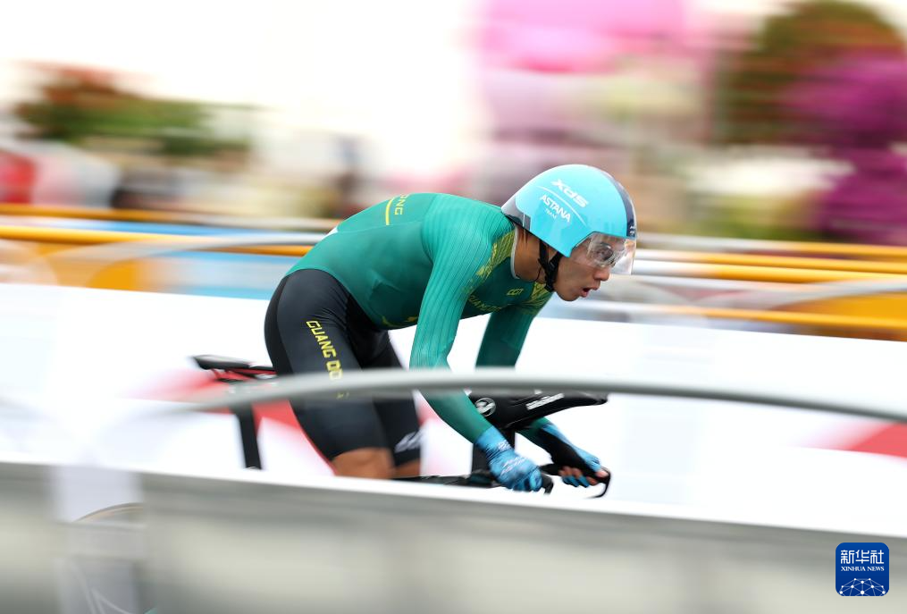 当日,第十五届全国运动会公路自行车男子个人计时赛决赛在珠海开赛。