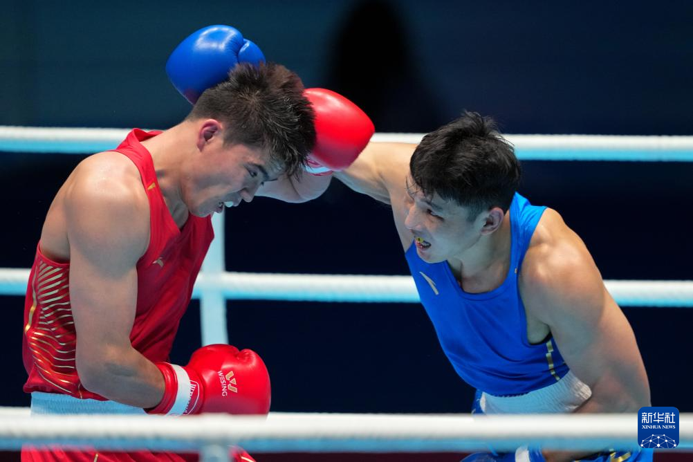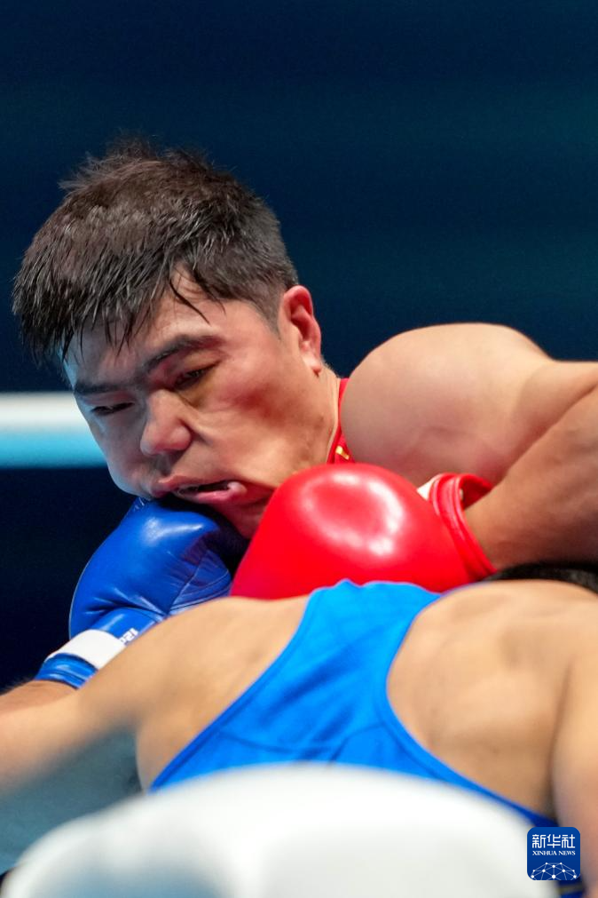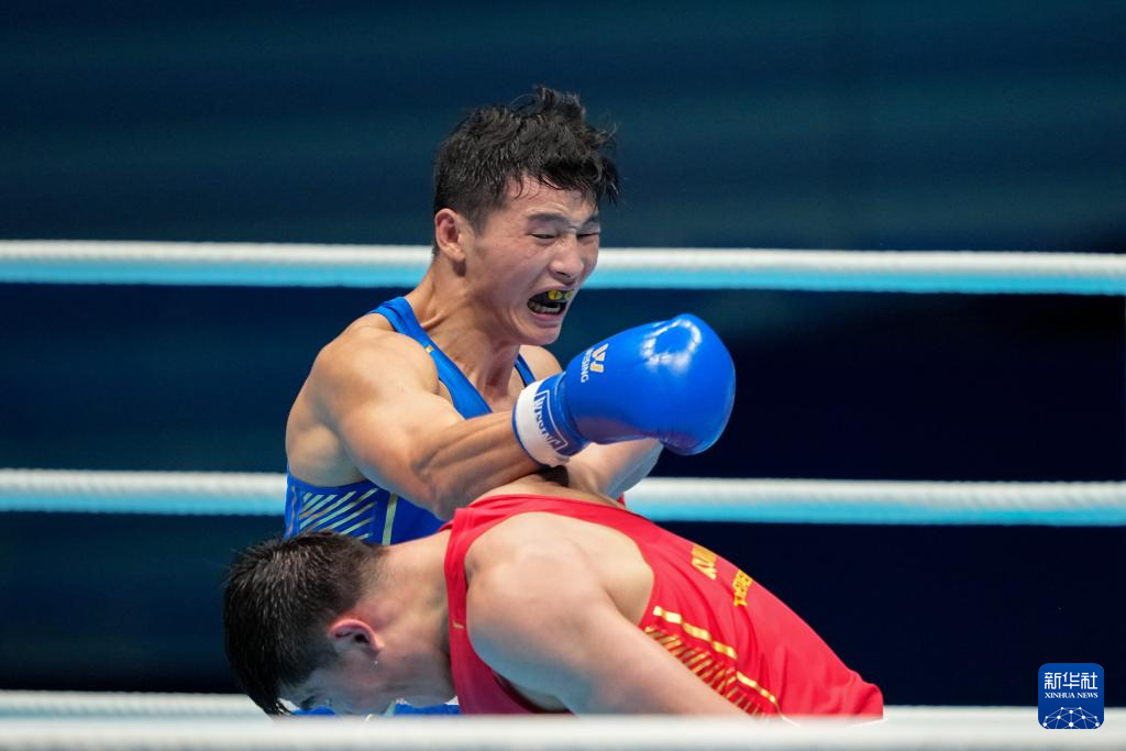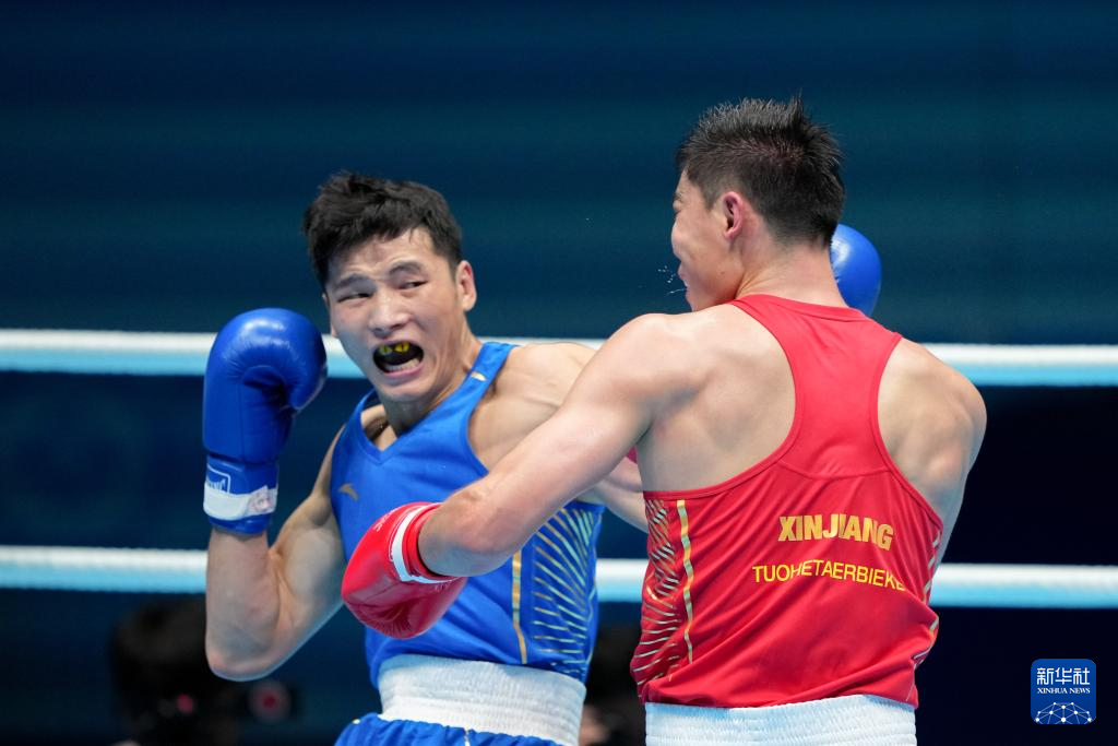 11月6日,王小保(左)与托合塔尔别克·唐拉提汗在比赛中。