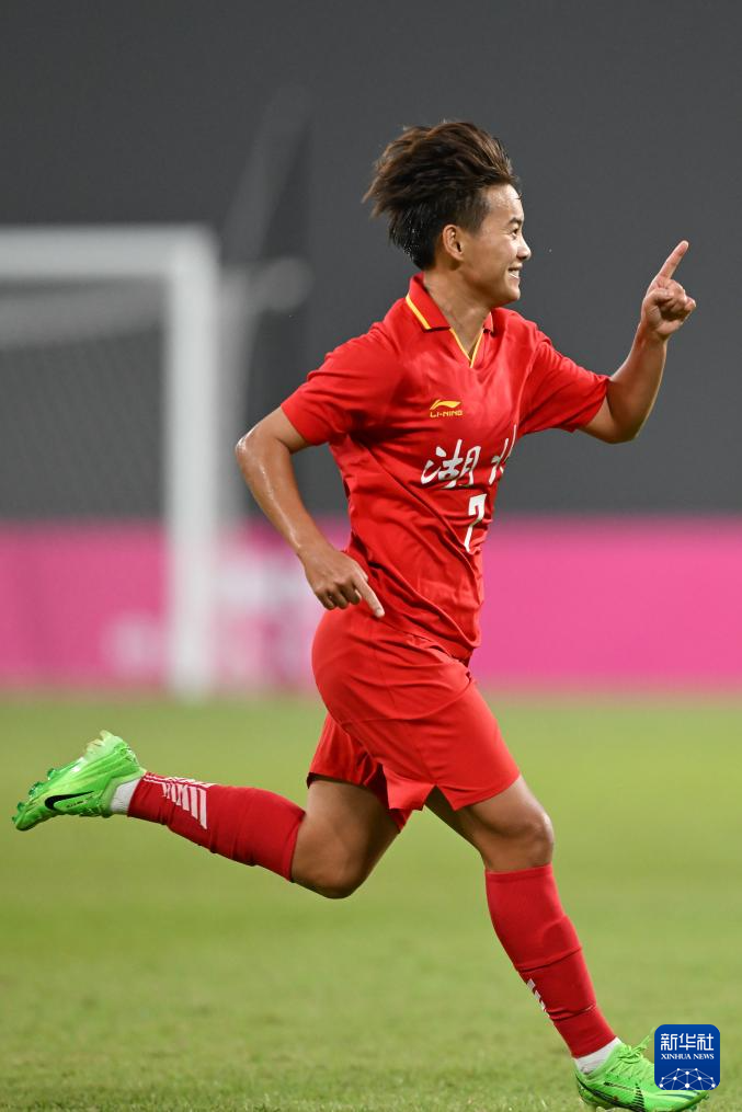 11月6日,湖北队球员王霜在打入首粒进球后庆祝。