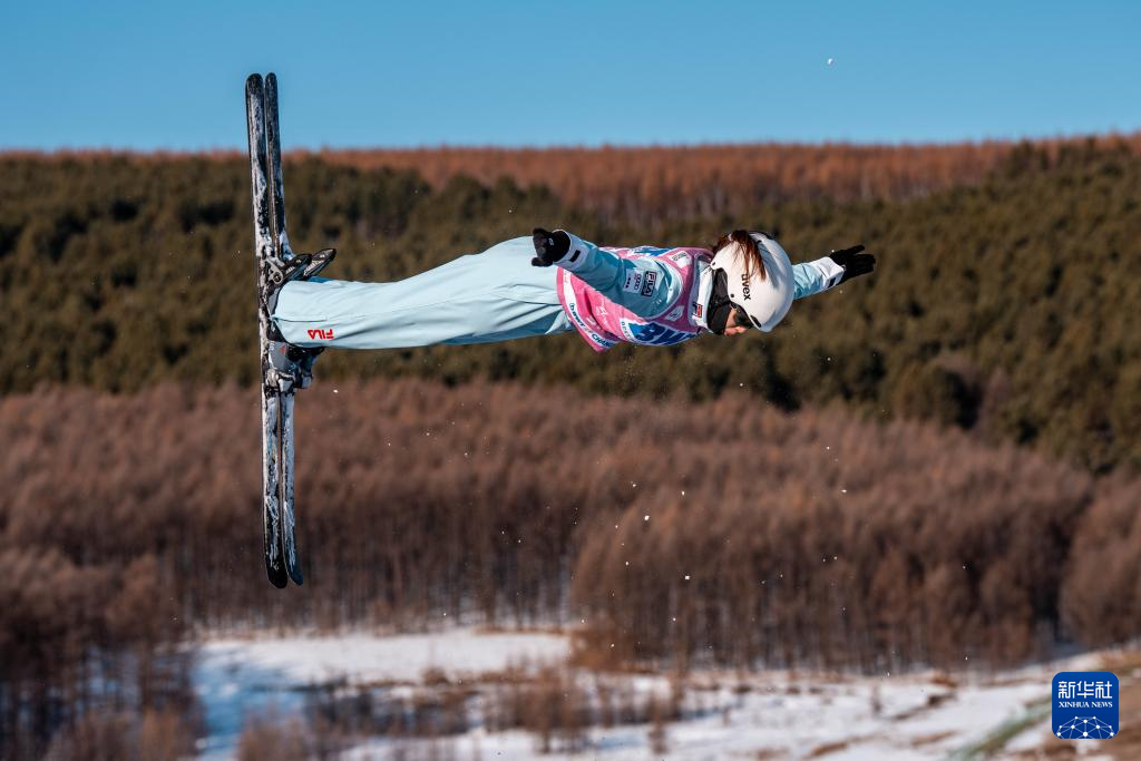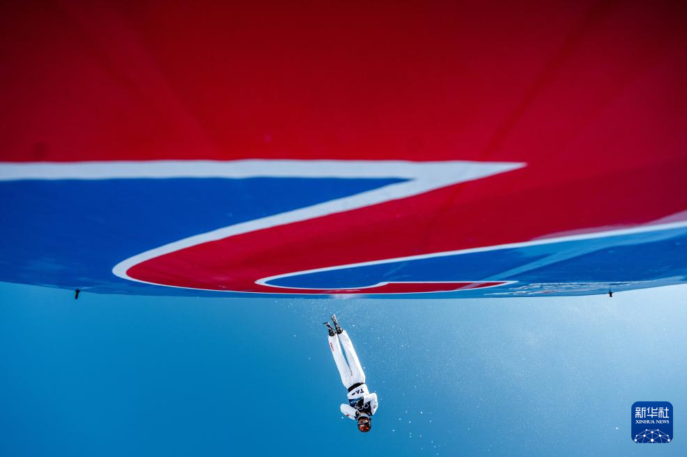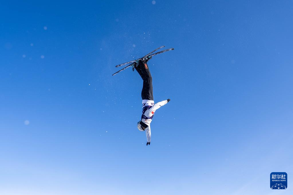 11月6日,自由式滑雪空中技巧运动员齐广璞在进行技术训练。