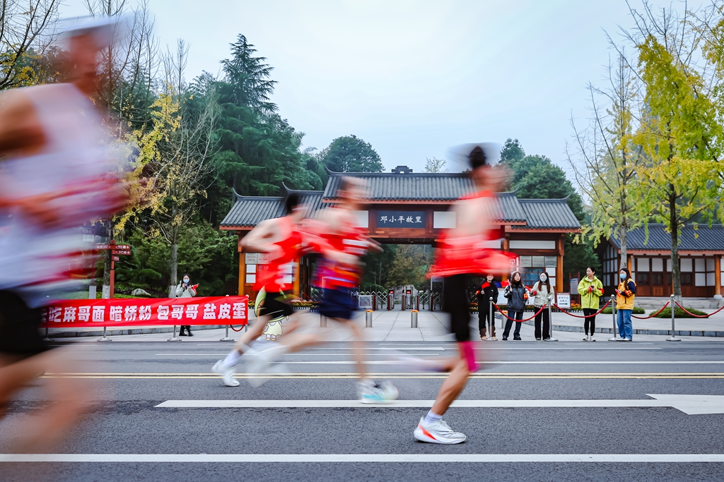 跑者经过邓小平故里景区。(组委会供图)