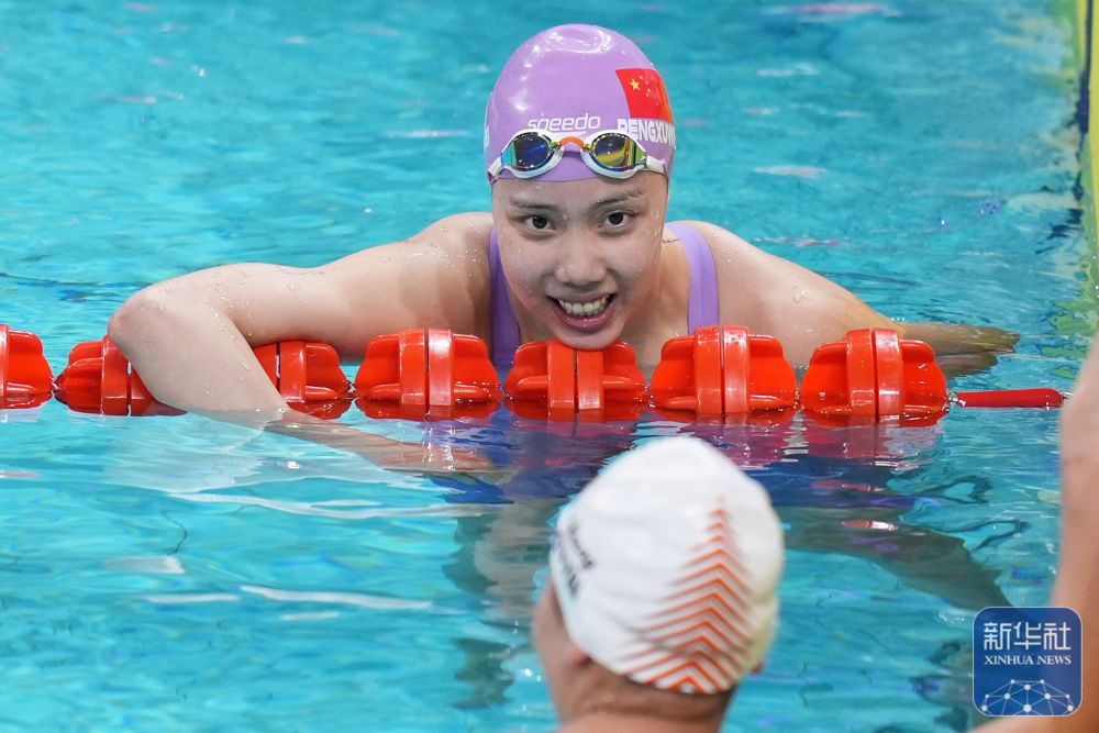 ↑湖北队选手彭旭玮在比赛后。新华社记者 杜宇 摄