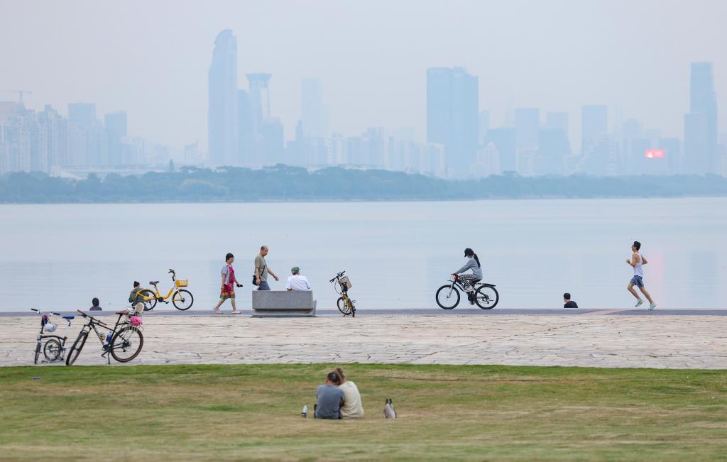 10月30日,市民在深圳湾公园健身。