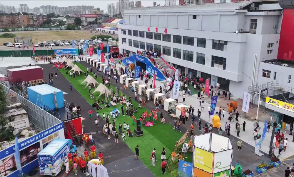 在保定市体育馆院内,每次河北五超比赛期间都会开设非遗文创市集。因为场馆毗邻当地文旅地标“西大街”,比赛期间周边街区还增设文创摊位与互动区,并举办文艺演出、非遗民俗展演等形式的“当足球遇见艺术”系列活动。