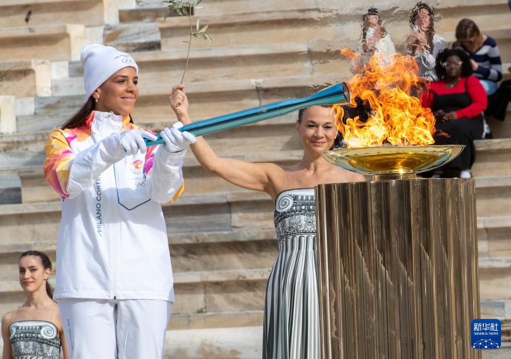 当日,2026年米兰-科尔蒂纳冬奥会圣火交接仪式在希腊雅典的泛雅典体育场举行。