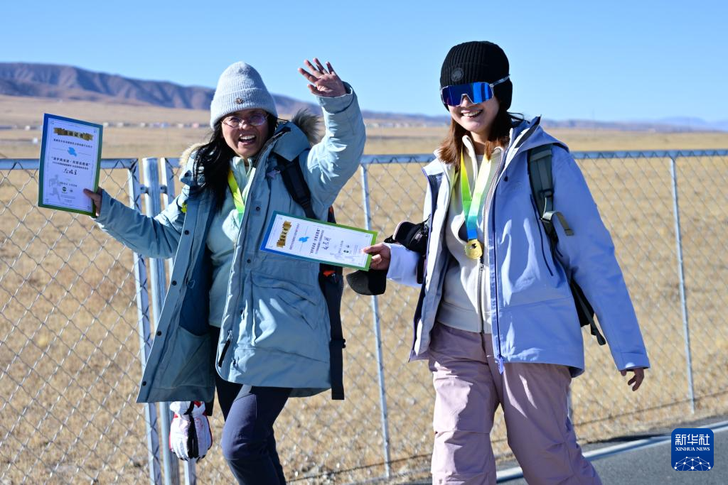 12月27日,徒步爱好者在活动中拍照留念。