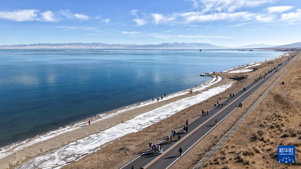 当日,青海湖迎新年生态环保徒步活动在青海省海南藏族自治州青海湖二郎剑景区举行。