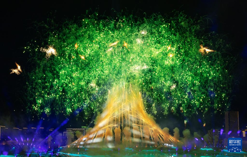 这是2025年这是8月7日拍摄的第12届世界运动会开幕式上的焰火表演。新华社记者 陈益宸 摄