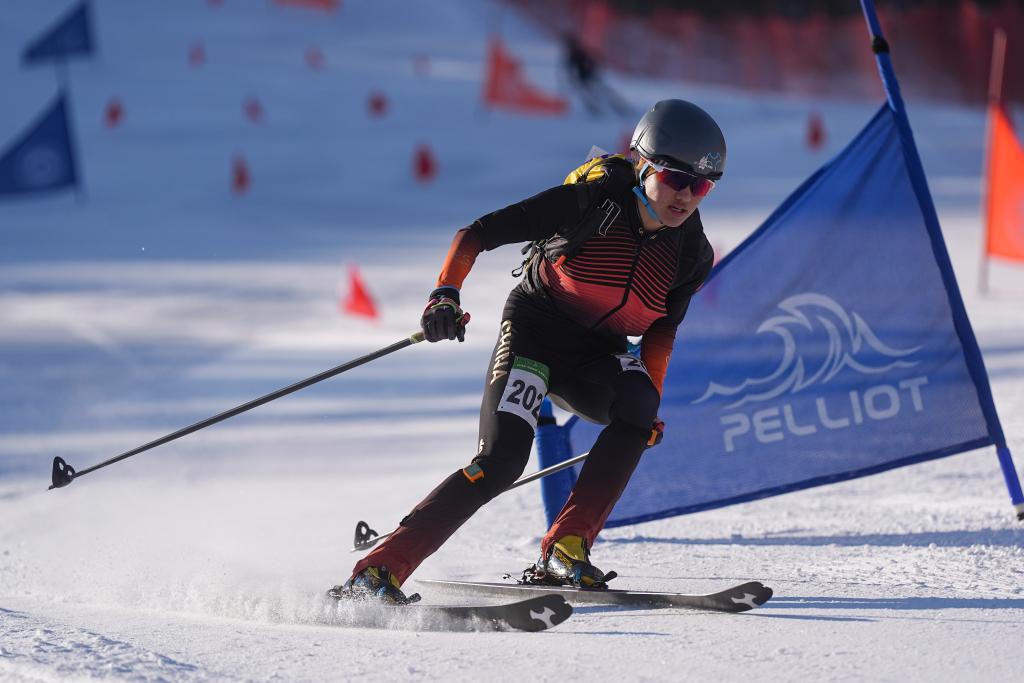 2025年12月16日,全国滑雪登山锦标赛短距离项目在吉林省吉林市中旅松花湖度假区举行。图为西藏队选手次旦玉珍在决赛中。最终,她获得专业组女子第二名。新华社记者胡虎虎摄