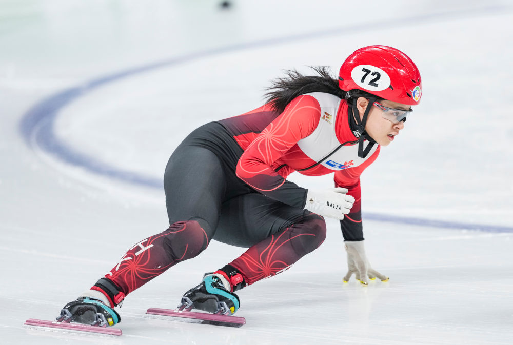 林静欣在2025年国际滑联短道速滑世锦赛比赛中。新华社记者 孙非 摄
