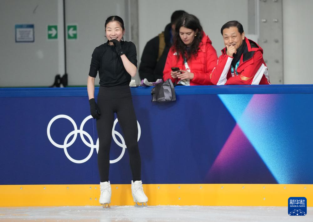 当地时间2月3日,中国花样滑冰运动员在米兰滑冰馆进行适应性训练,备战即将开幕的米兰冬奥会。
