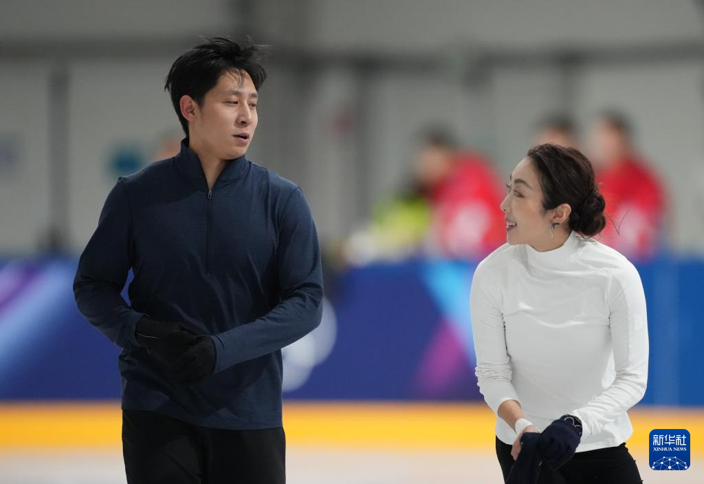 2月3日,中国花样滑冰选手隋文静(右)、韩聪在训练中。
