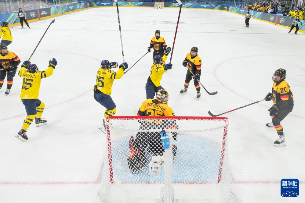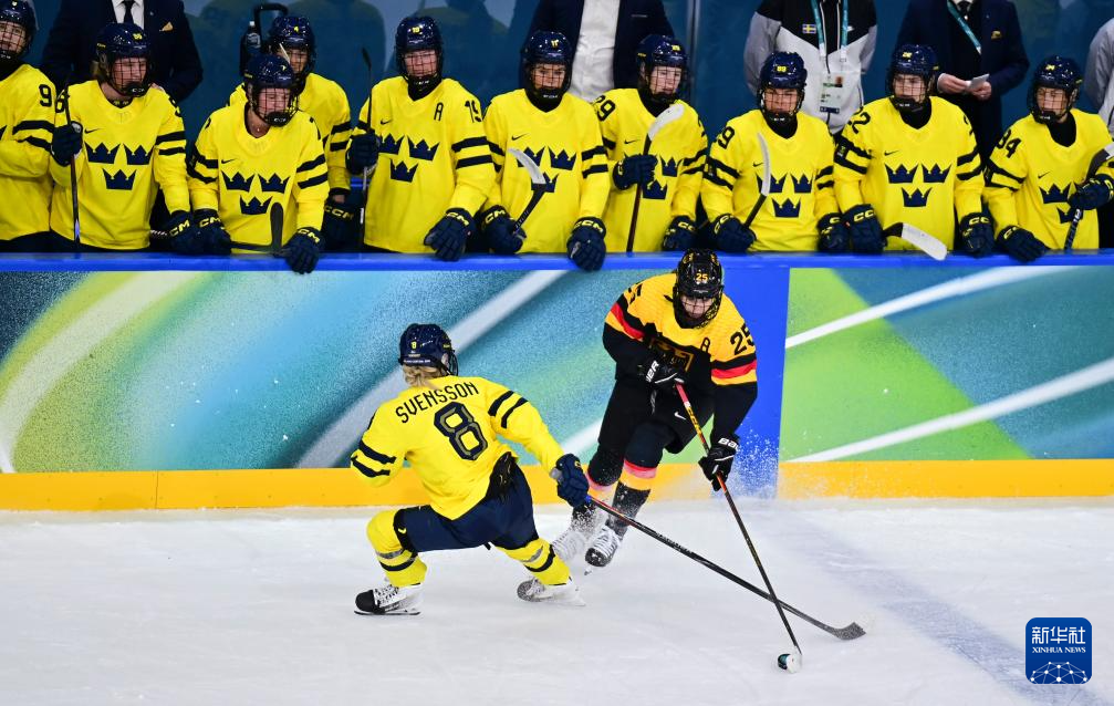 当地时间2月5日,在意大利米兰举行的米兰-科尔蒂纳冬奥会冰球项目女子小组赛B组比赛中,瑞典队4比1战胜德国队。