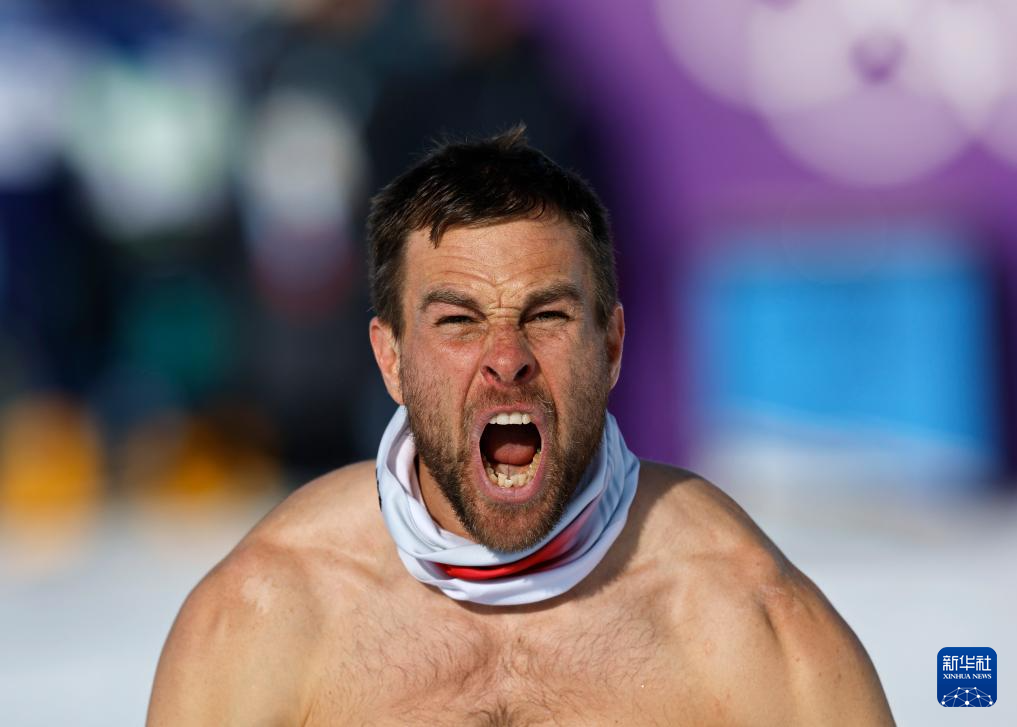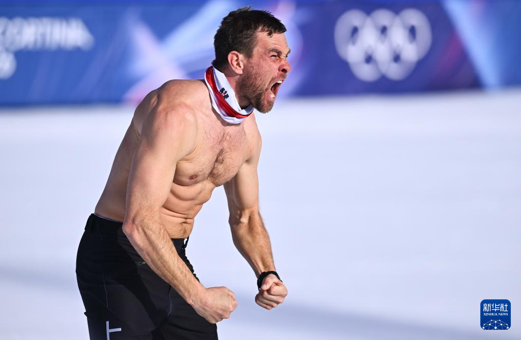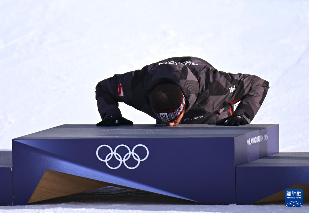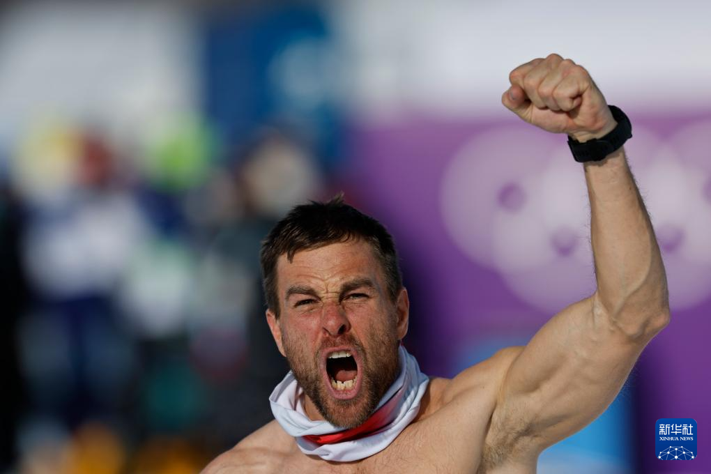 2月8日,奥地利选手本亚明·卡尔在比赛后庆祝胜利。