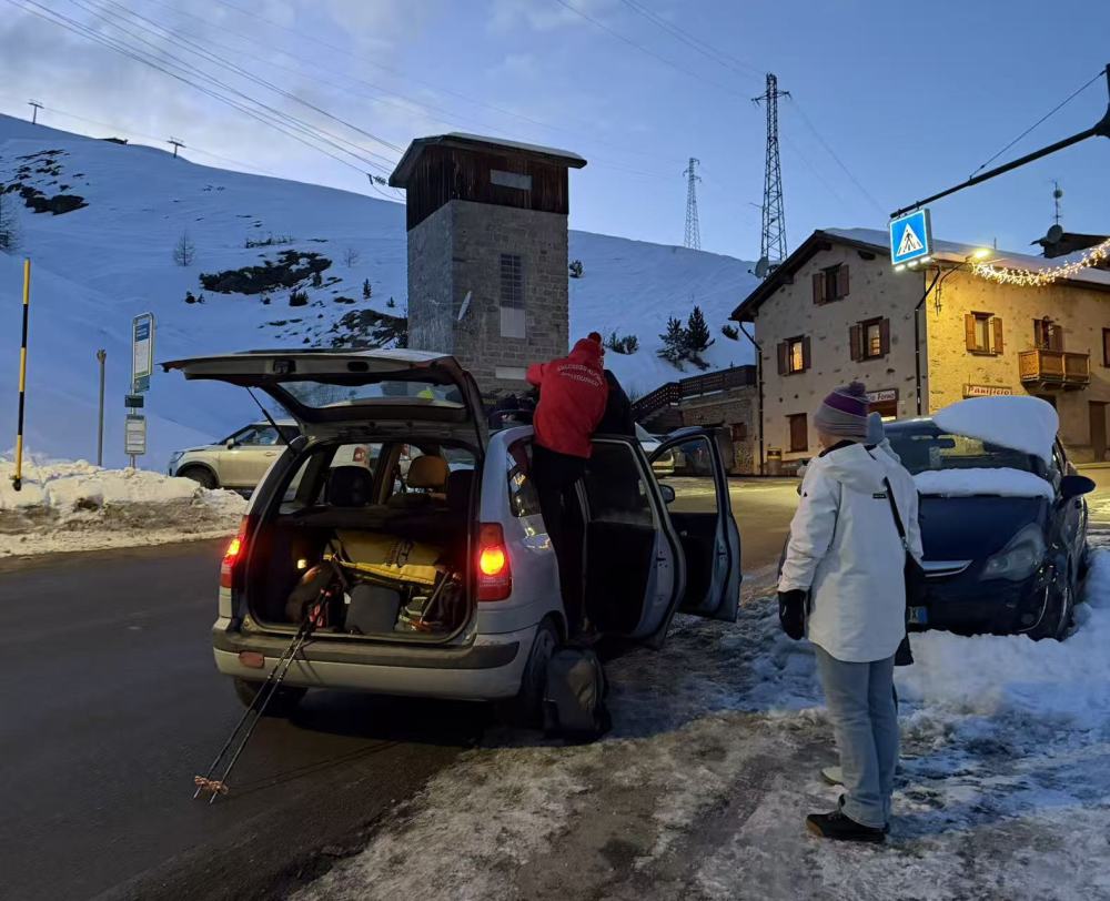 “我的车能坐5个人呢!把雪板绑到车顶上就行。”意大利小哥热心地表示。