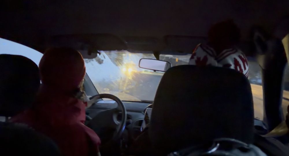 这时,加拿大小哥打开了话匣子:“要不我们尝试搭顺风车吧,在阿尔伯塔的雪场,我经常这么干。”我们仨尚在腼腆,他就大大咧咧地开始朝每一辆过路车竖起大拇指。看到他如此积极,我们也有样学样起来。