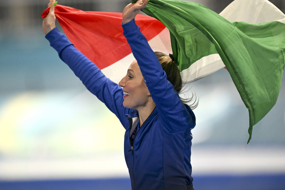 在速度滑冰女子3000米比赛中,意大利老将弗兰切丝卡·洛洛布里吉达以刷新赛会纪录的成绩首夺冬奥会金牌,为东道主赢得了在本届冬奥会上的首枚金牌。她的成绩把这个项目的冬奥会纪录缩短了2.65秒。中国选手杨滨瑜排在第17位。