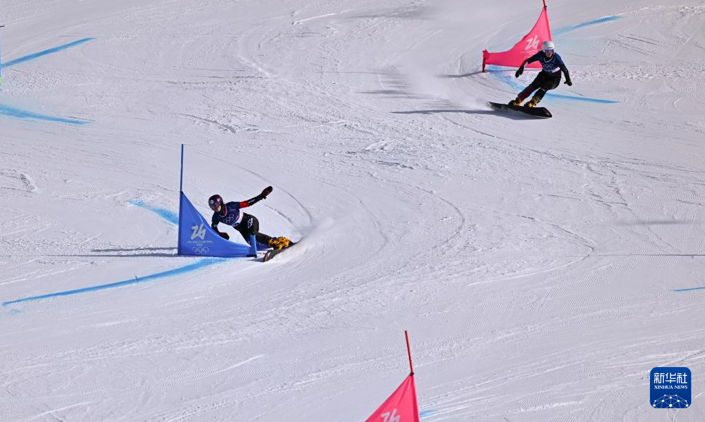 2月8日,马德罗娃(左)和奥地利选手帕耶尔在比赛中。最终她们分获冠、亚军。