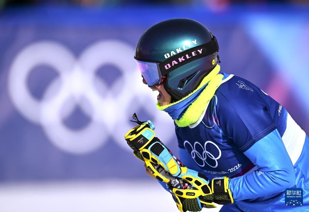 2月8日,意大利选手达尔马索在比赛中庆祝。最终她获得季军。
