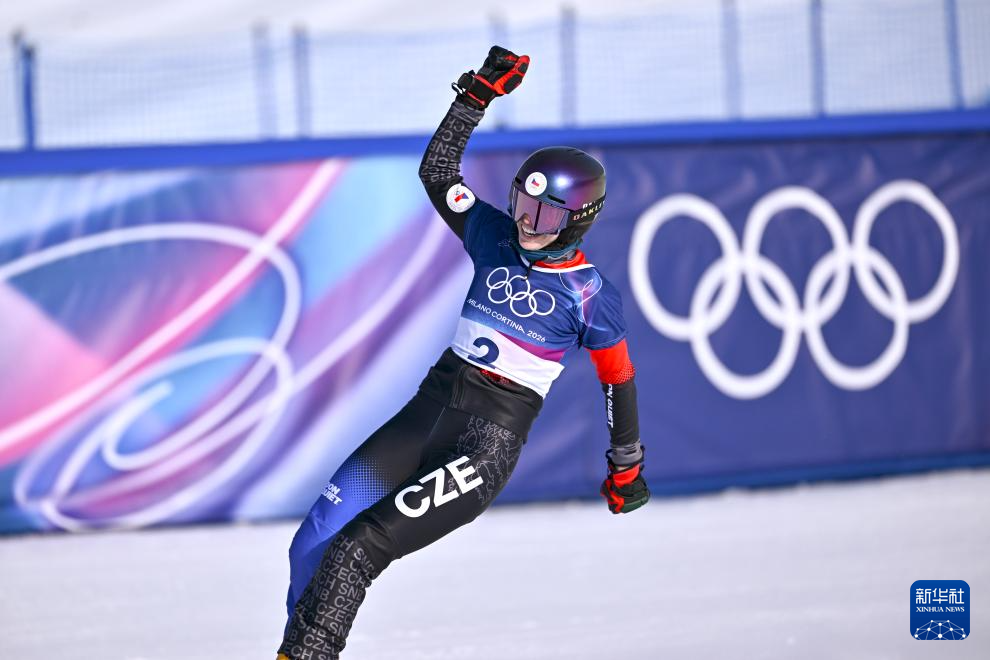 当地时间2月8日,在意大利利维尼奥举行的米兰-科尔蒂纳冬奥会单板滑雪项目女子平行大回转决赛中,捷克选手马德罗娃获得冠军。