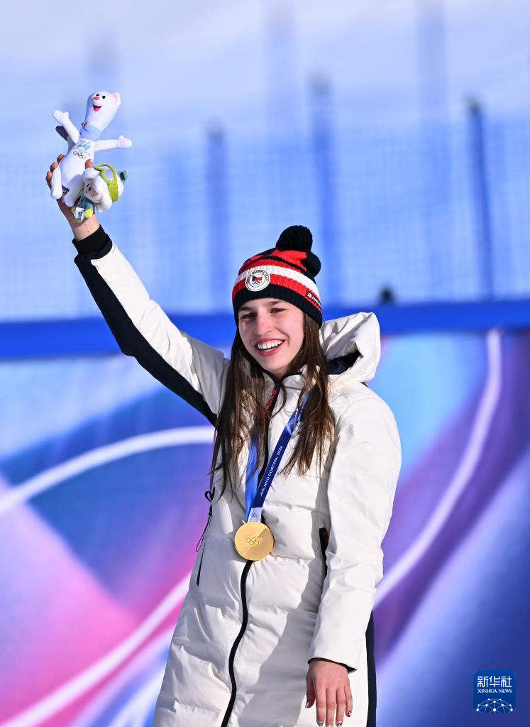 2月8日,冠军捷克选手马德罗娃在颁奖仪式上。