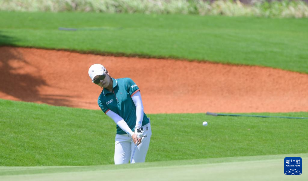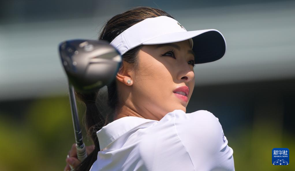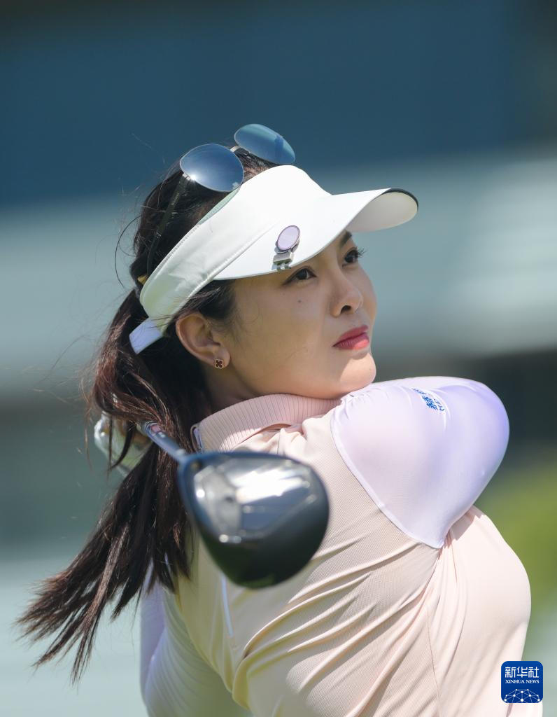 3月8日,中国选手何沐妮在比赛中发球。最终,她以290杆、高于标准杆2杆的总成绩获得并列第28。