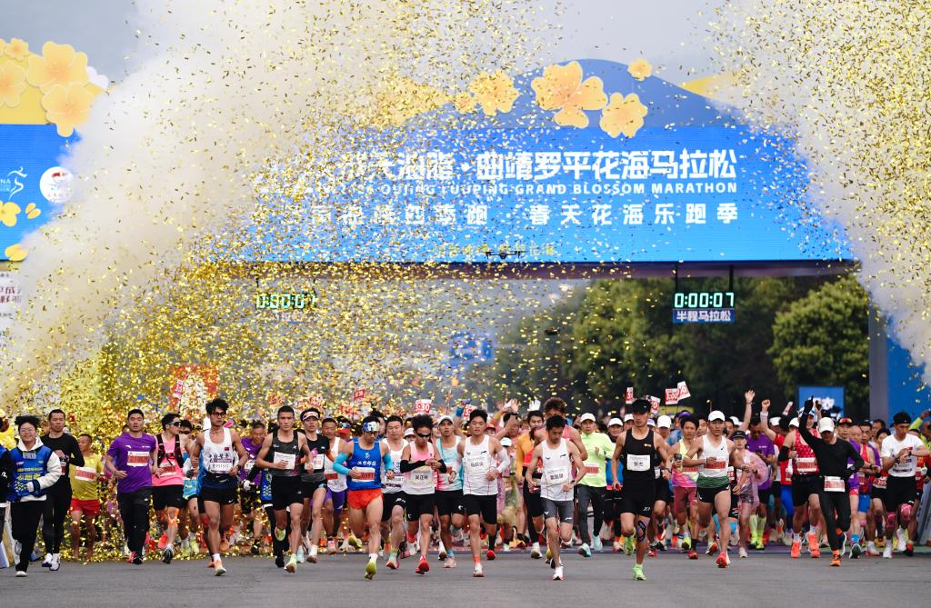 3月15日,2026曲靖罗平花海马拉松在云南省曲靖市罗平县鸣枪开跑。新华社记者 陈欣波 摄