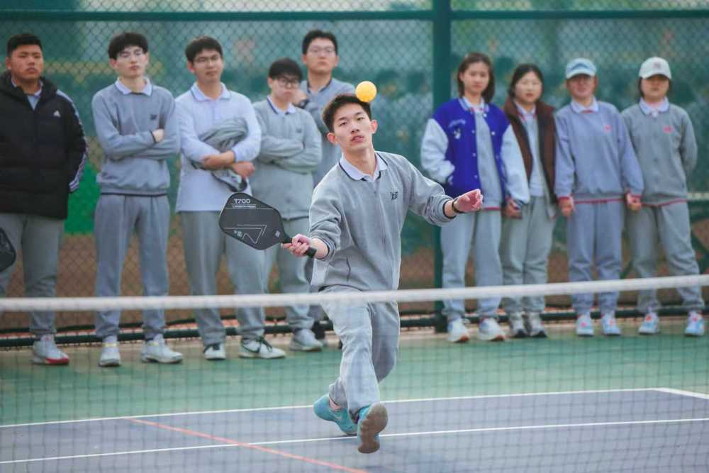 去年底,该校高三年级体育教师通过专业培训,系统掌握了匹克球的运动技巧与教学方法。此后,学校将校内3块网球场重新贴线,改造为12块匹克球场,并在全校600多名高三学子的体育课中正式推广这项运动。