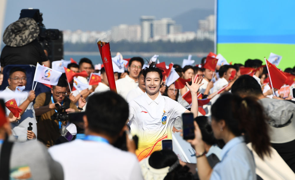 首棒火炬手、奥运冠军昌雅妮表示,在沙滩上举着火炬奔跑、身边就是大海,这样的体验十分特别,也让她对即将到来的亚沙会充满期待。