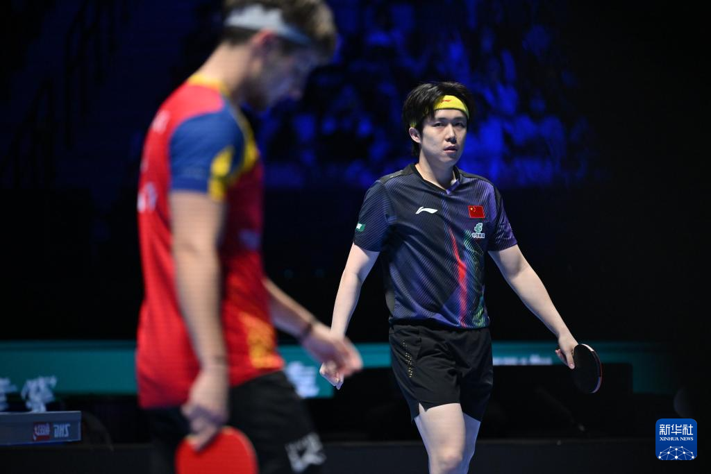 3月31日,中国选手王楚钦(右)在比赛中。
