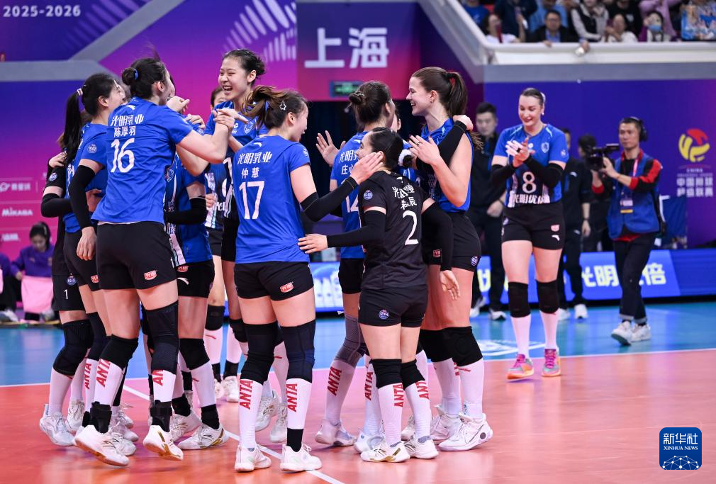 3月31日,在2025-2026赛季中国女子排球超级联赛总决赛冠亚军决赛第二回合比赛中,上海光明优倍队主场3比0战胜江苏中天钢铁队,双方总比分占成1比1平。