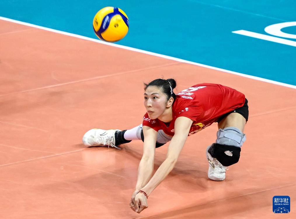 4月1日,江苏中天钢铁队球员吴梦洁在比赛中防守。她获得2025-2026赛季中国女子排球超级联赛最佳主攻称号。