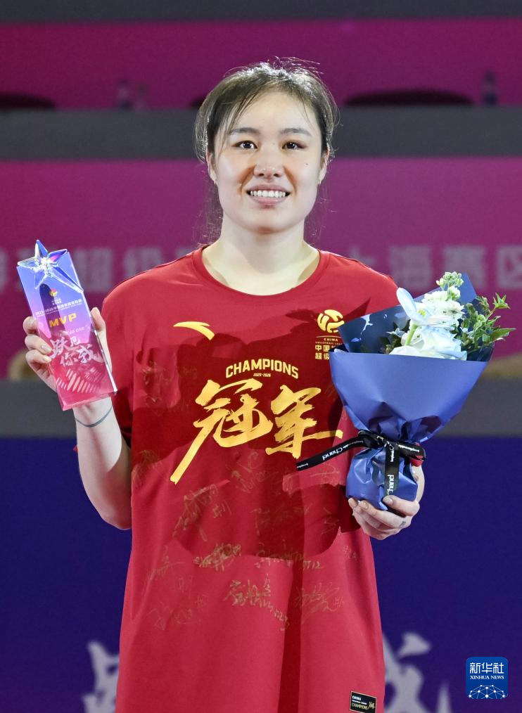 4月1日,上海光明优倍队球员王唯漪获颁2025-2026赛季中国女子排球超级联赛最有价值球员(MVP)。