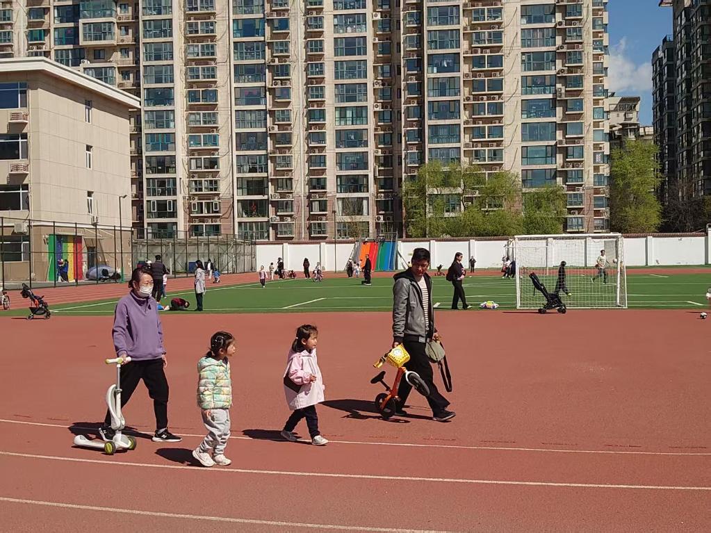 他认为,要让孩子养成运动习惯,家长的影响和陪伴也至关重要。因此,从2022年开始,学校尝试运动场对外开放。开放的时间是周一至周五的18:00至20:00以及周末、节假日的7:00至11:00和17:00至20:00。只要是家长带着孩子、登记基本信息,就可以在开放的时间段到学校操场活动。而且,这样的开放政策并不只是针对在丰台区外国语学校上学的学生,在学校附近居住的孩子都可以享受,学校的部分运动器材也可以免费使用。