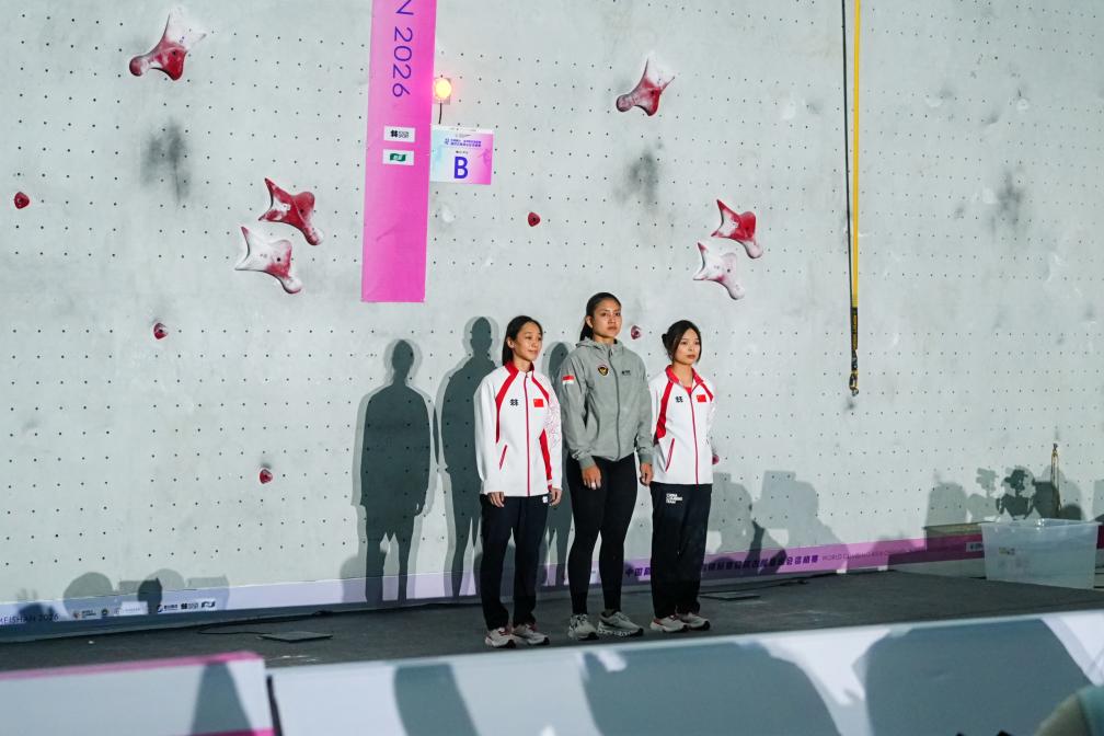 中国选手周娅菲、覃于妹分获第二、三名。周娅菲凭此获得了中国队剩下的一个名古屋亚运会女子速度攀岩资格。