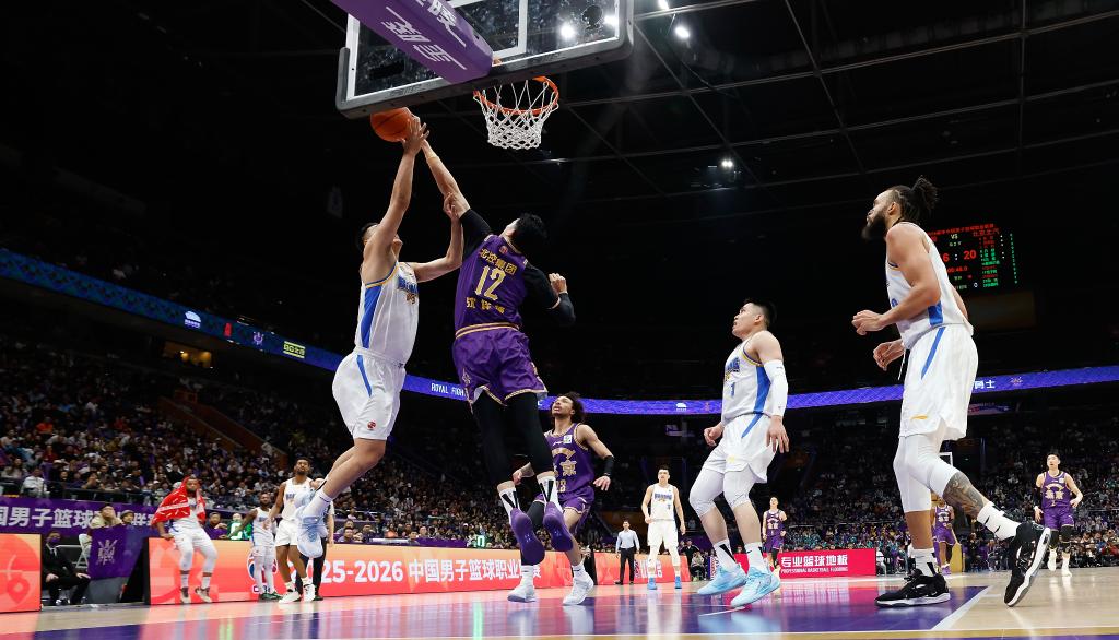 4月10日,2025-2026赛季中国男子篮球职业联赛(CBA)常规赛,北控队主场对阵北京队。新华社记者 王丽莉 摄