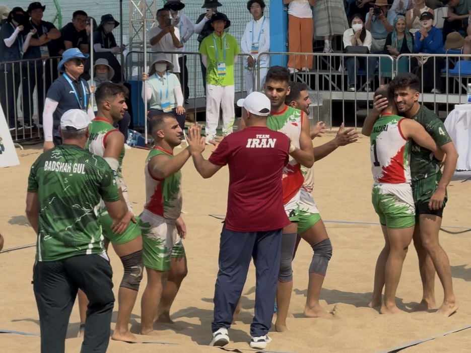 在男子沙滩卡巴迪项目中,伊朗队和巴基斯坦队都是夺冠热门。伊朗队曾在第三届和第四届亚沙会决赛中战胜巴基斯坦队夺冠;巴基斯坦队则在2016年越南岘港亚沙会上击败印度队夺金,并在此前五届比赛中取得1金4银的好成绩。