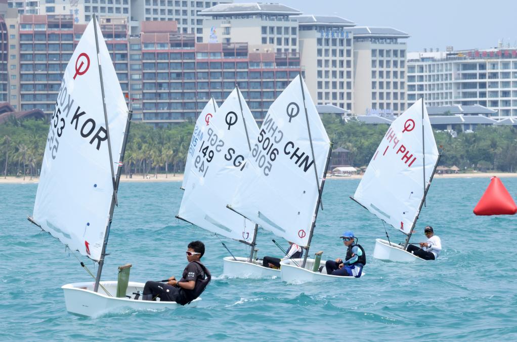 OP帆船是亚沙会所有项目里面参赛选手年龄最小的项目。参与OP帆船项目的选手需在16周岁(2011年1月1日以后出生)以下。这些小运动员需要自己去调试桅杆,推船下海参赛。