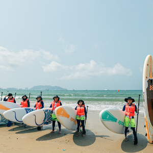 图为亚沙会游跑两项水上桨板救生组