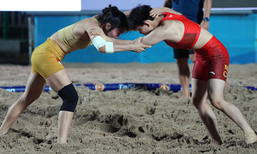 “感觉参赛选手的技战术准备和体能储备都很充分,这激发我要拿出更好的状态。”龙佳说,她和不少队友都是首次参加沙滩摔跤比赛,十分享受比赛过程,期待在决赛中取得好成绩。“这项比赛规则更加简单,适合朋友间三三两两在沙滩上角逐。”她还希望通过沙滩摔跤比赛让更多人接触并喜爱摔跤运动。